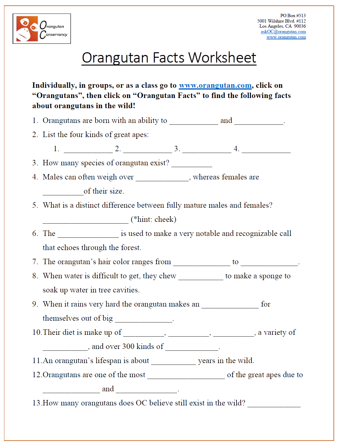 Welcome to Orangutan Conservancy free download section. Here you can find free educational infographics and files that we have created for you to use and distribute!