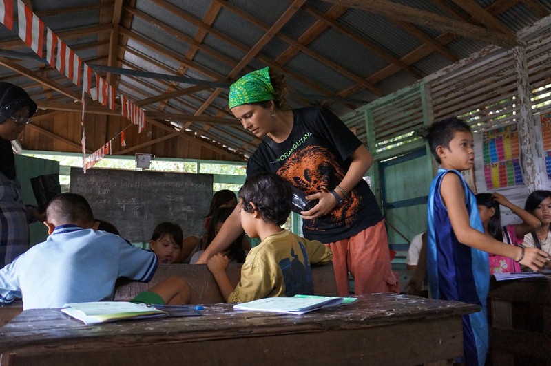 We held the baby until the rescue team arrived. At one moment, as I held this young infant in my arms, I thought about his lost opportunity – that he would never be with his mother again and he would never experience the bond between mother and offspring that I had just observed in the forest that day with Juni and Jip. It was then that I knew I would try to make a difference, to try to combine my research with conservation and try to help teach the people surrounding the research area about orangutans, conservation, and the importance of their habitats.