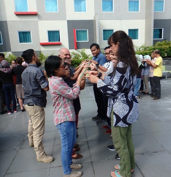 After his speech and the welcome from Steve Unwin and myself, we headed outside for the ice breaker: working together to lower a straw tube to the ground.