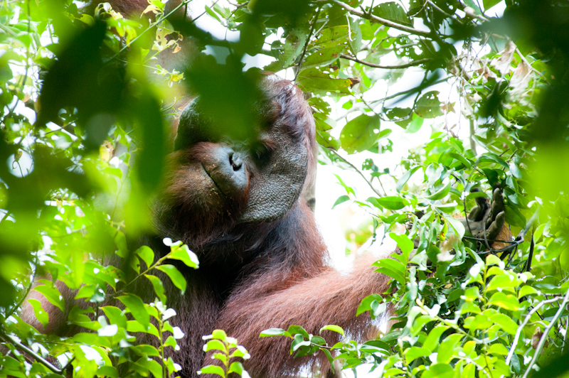 Similar stories could be told for almost all peat-swamp forests in Kalimantan – precious few have completely escaped logging disturbance. Logging reduces habitat quality, removes large trees that orangutans favor for food and disrupts their behavior, compromising survival. In particular, the upper canopy layer in Sabangau is punctuated by numerous gaps, with the result that orangutans typically travel through the smaller trees of the more continuous lower canopy layers to save energy. Hunting probably also impacted Sabangau’s orangutans, especially during periods of intense logging.